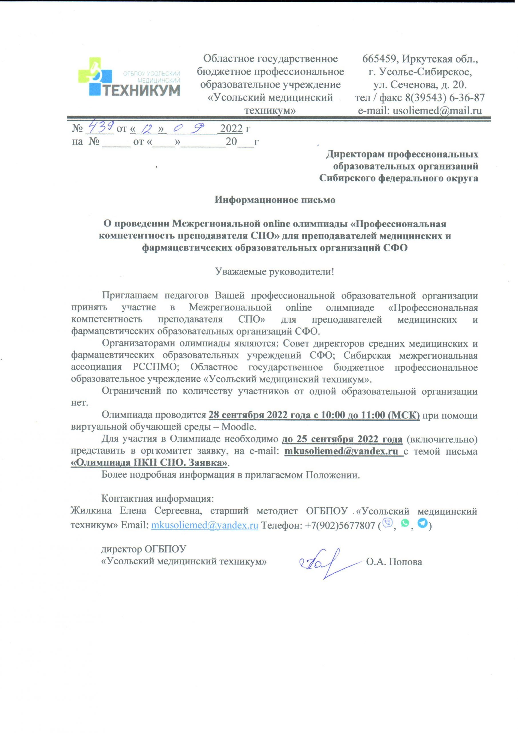 Межрегиональная online олимпиада «профессиональная компетентность преподавателя СПО» для преподавателей медицинских и фармацевтических образовательных организаций СФО