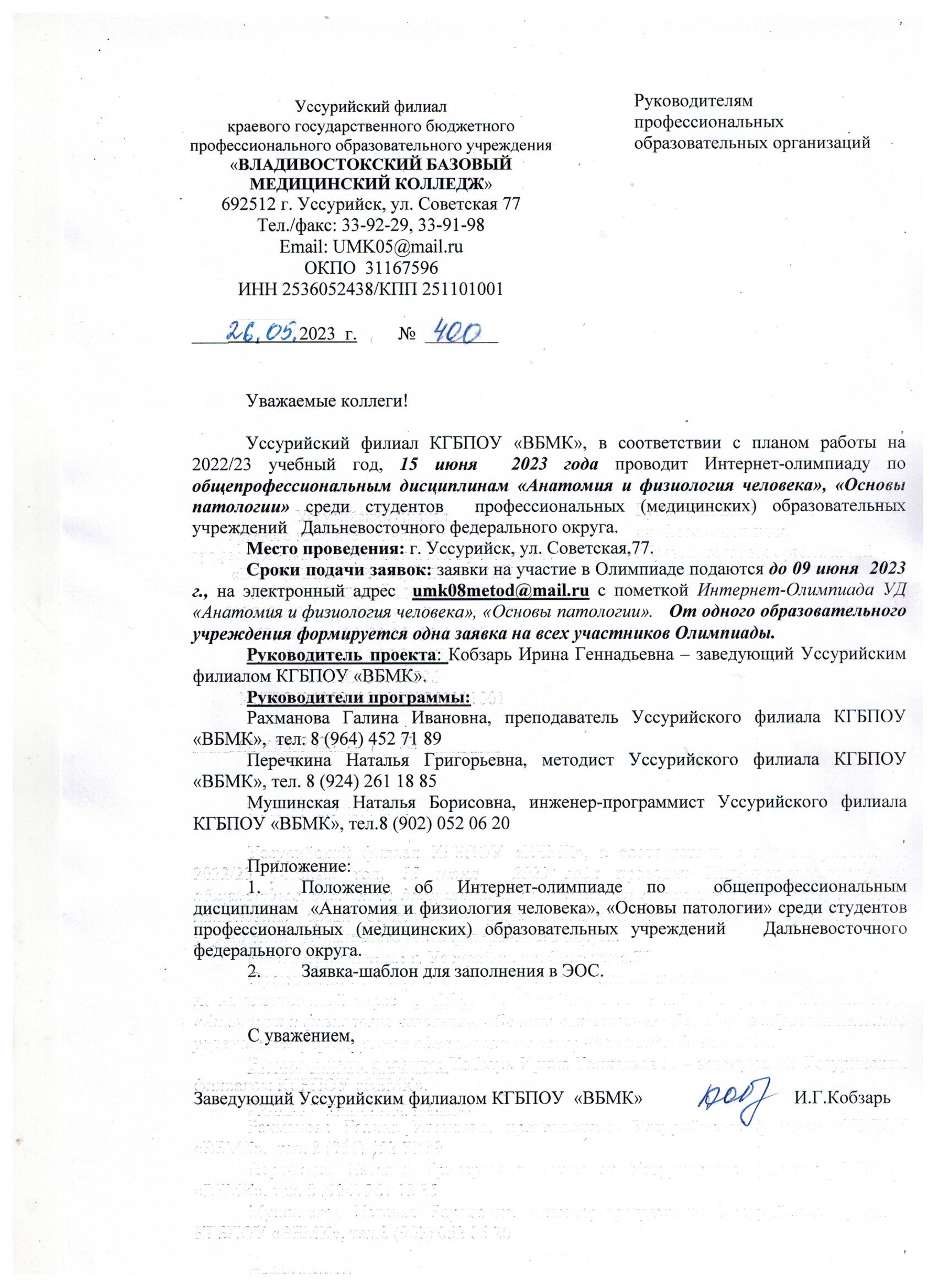 Интернет-олимпиада по общепрофессиональным дисциплинам «Анатомия и физиология человека», «Основы патологии» среди студентов профессиональных (медицинских) образовательных учреждений ДФО Автор: Василиса Батомункуевна | 27.05.2023 Нет комментариев Информационное-письмо-15.06.2023Скачать 15.06.2023-ПОЛОЖЕНИЕ-по-Олимпиаде-УД-Анатомия-и-патологияСкачать Заявка-шаблон-для-заполнения-в-ЭОС-участники-олимпиады-2Скачать
